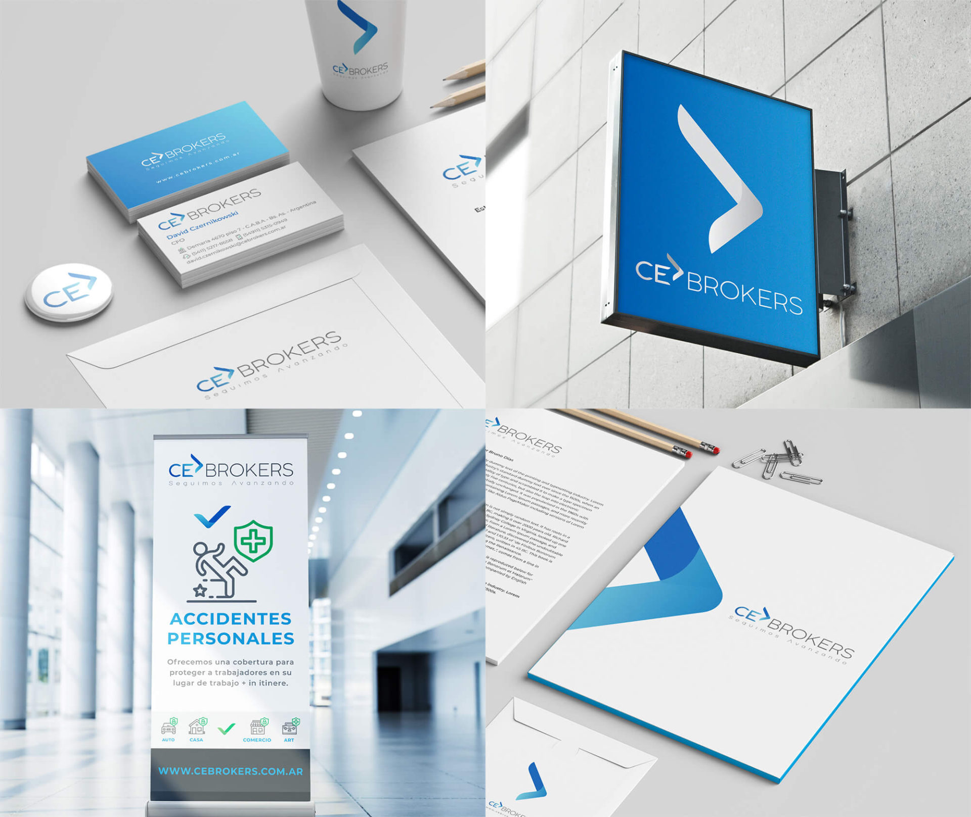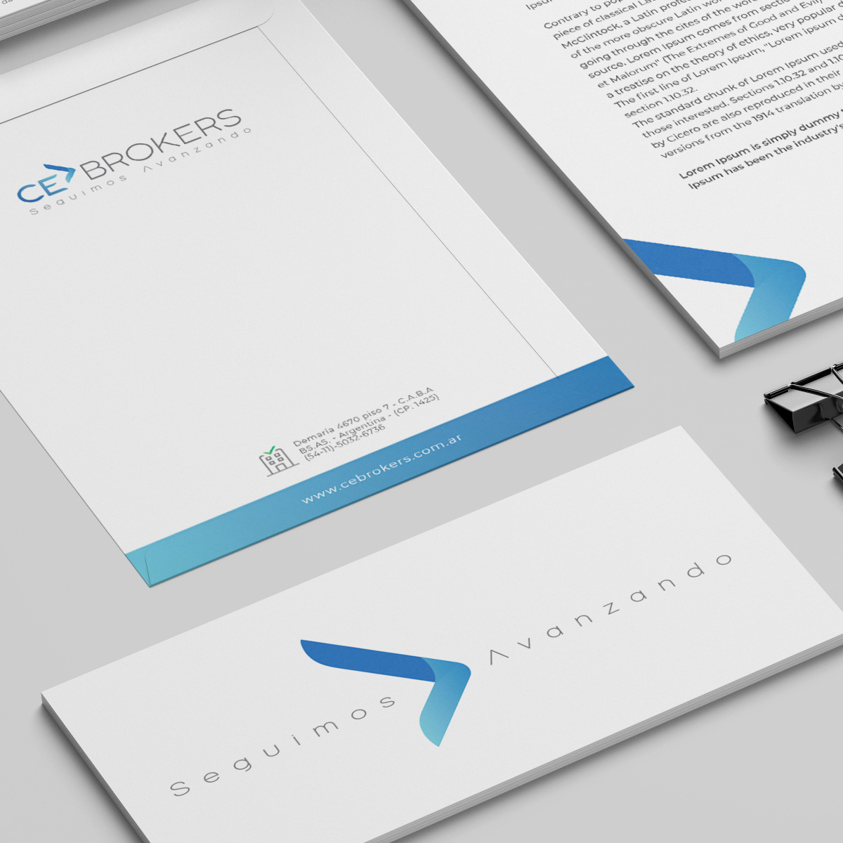 El proyecto para CE Brokers fue la creación de una sólida imagen corporativa que capturara el concepto central de la marca: «Seguimos avanzando». Este concepto busca representar la unión de los dos socios, C+E, que siempre están en constante movimiento.